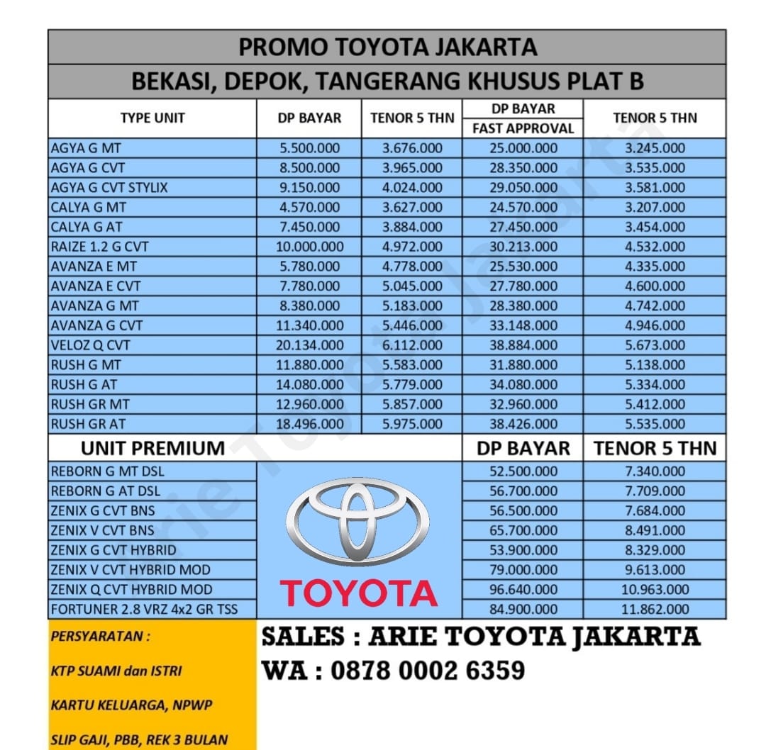 | 1.2 GR M/T (One Tone) | IDR 246.200.000 |